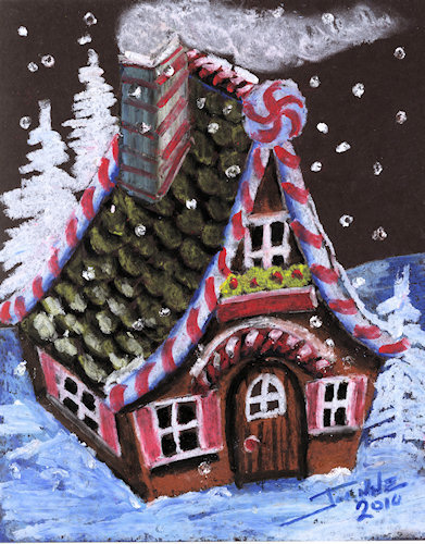 Cute as can be Oil Pastel gingerbread house! Candy, cookies and snow for winter!