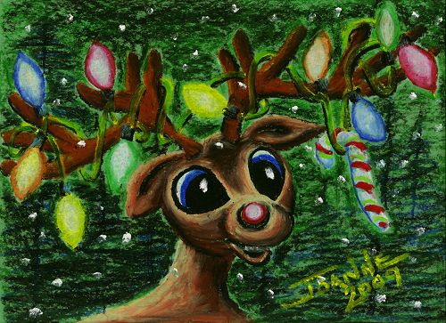 Sing along everybody! Here is the famous deer himself, a bit wrapped up in
