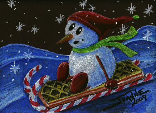 snowkid... charging down the hill on his candy cane and cookie sled!