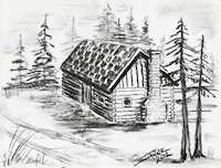 Homestead in charcoal with fabulous forest background.